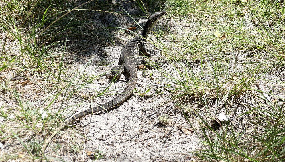 Dieser Waran stellte sich uns in den Weg....bevor er im Gebüsch verschwandt.