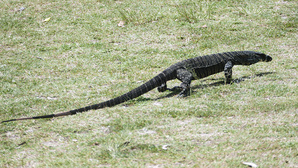 Dort, am Nationalpark Campground, wartet bereits wieder ein Waran.