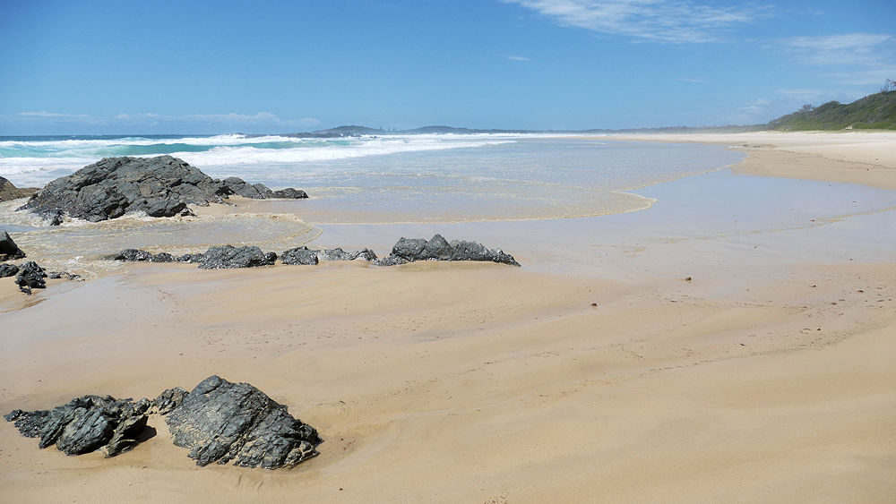 An den zwei kleinen Erhebungen am Horizont befindet sich unser Camp.