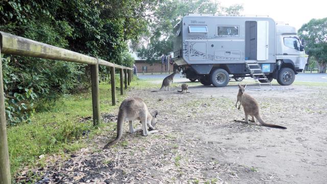 Am Morgen waren wir zuerst mal von Kängurus belagert....