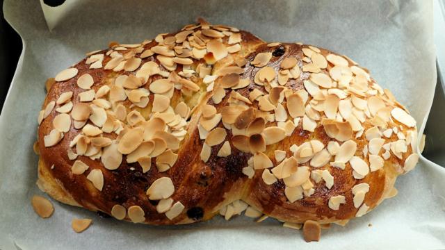 Heute morgen fanden wir auch noch Zeit, ein Kranzbrot zu backen. In Einzopftechnik geflochten.