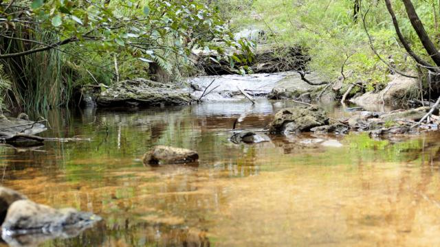 Bachbett des Bächleins, dass sich kurze Zeit später....