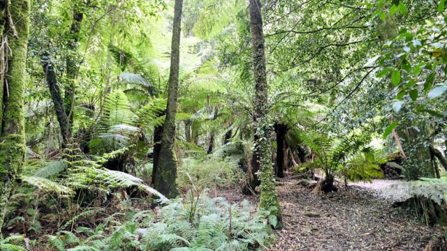 zur "Cathedrale of Ferns" was sich als eine Ansammlung von Baumfarnen darstellte und...