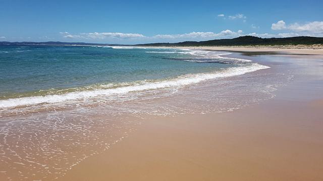 Nach ein paar hundert Meter beginnt der Natiuonalpark Wyrrabalong, und dann nimmt der Strand kein Ende.