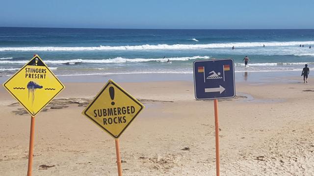obwohl sogar Quallenalarm war. Es sind die hauptsächlich Portugiesischen Galeeren, die hier Blue Bottle Stingers heißen.