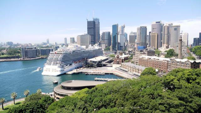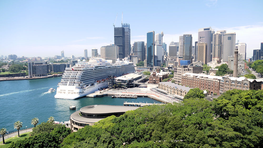 Große Kreuzfahrtschiffe müssen vor der Harbour Bridge am Circular Quai anlegen und verschandeln den Blick.