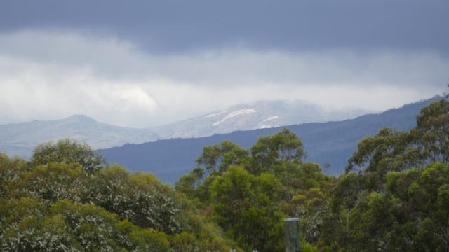 Von Ferne sieht man den Mt. Kosciuszko (2.228 m) mit seinen Schneeresten.
