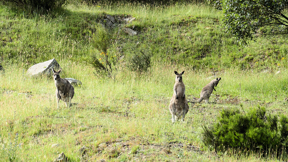 Unser Känguru-Verabschiedungskomitee am Campground.
