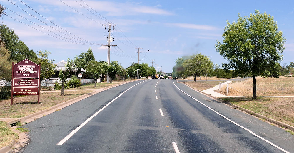 Rutherglen, die hübscheste Stadt Victoria. So das Schild. Früher Goldgräberstadt, heute gibt es 17 Weinkellerereien.