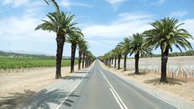 Die palmengesäumte Straße nach Seppeltsfield.