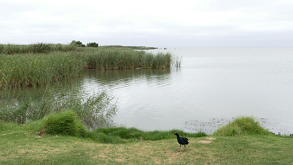 Lake Alexandrina mit Purpurhuhn.