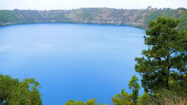 Der Blue Lake in Mount Gambier ist nicht eingefärbt. Algen im Sommer sollen die Blaufärbung herbeiführen.