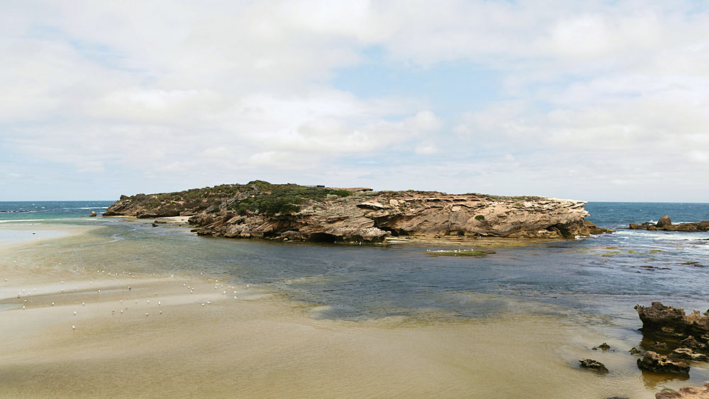 Warnnambool: Vorgelagerte Inseln Merri Island und Middle Island (dahinter). Heimat von "Little Penguins" .