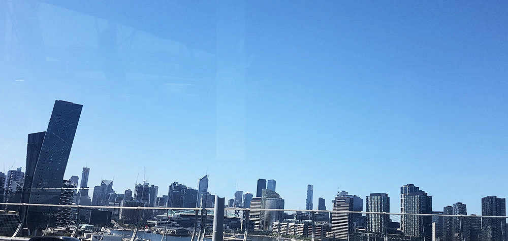 Der Wolkenkratzer links ist nicht perspektivisch verzerrt, sondern "schief" gebaut.