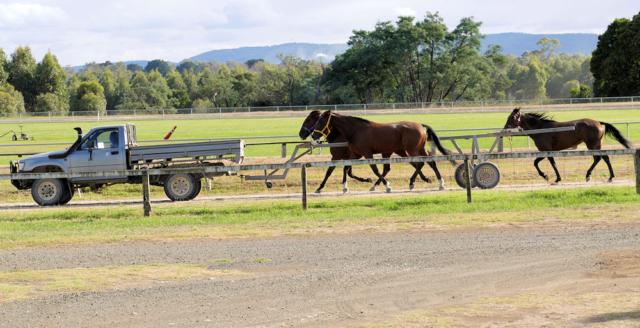 Unser Stellplatz in Beaconsfield war auch eine Trabrennbahn. Heute morgen wurden die Traber zum Morgentraining über die Bahn geführt. Sie hatten viele Runden zu absolvieren.
