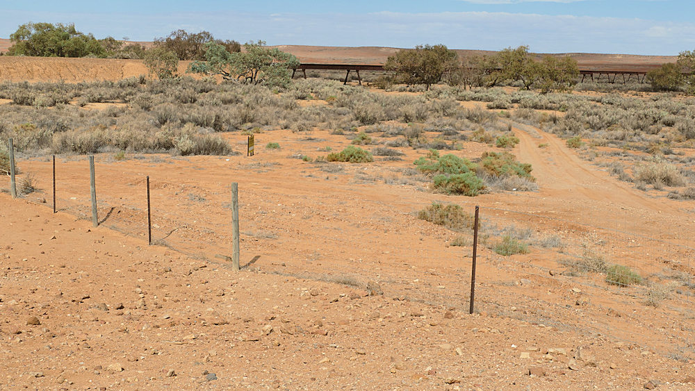 Wir querten den "Dog Fence", den 9.600 km langen Zaun, der quer durch Australien geht. Er soll Dingos am wandern nach Südaustralien hindern.