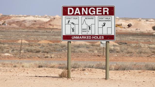 Vor ungesicherten Schachtöffnungen wird hier gewarnt.
