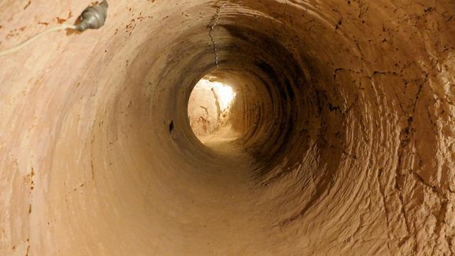 während heute solche Stollen maschinell gebohrt werden.