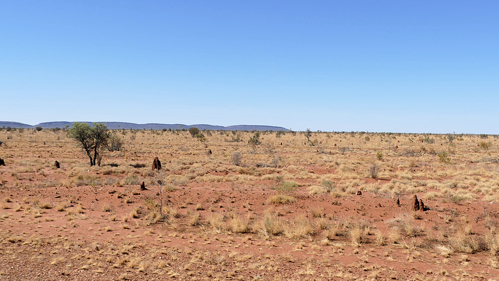 Kaum sind wir in den Tropen tauchen auch schon wieder Termitenhügel auf.