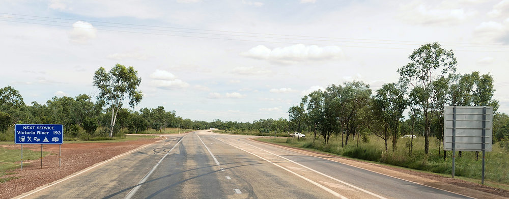 In Katherine fuhren wir auf den Victoria Highway: Die nächsten 193 km ist nichts zu erwarten.