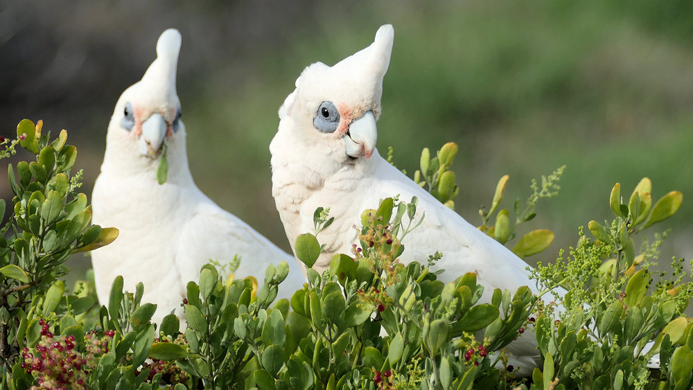 zuerst diese Kakadus, die sich in einem Busch neben unserem LKWle tummelten und....