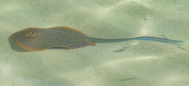 mit ihren leuchtend blauen Punkten. Kein Wunder, sie heißen auch Blaupunkt-Rochen