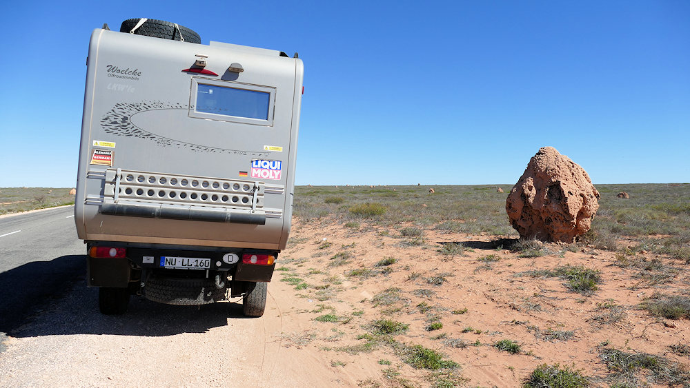 Auf der Fahrt nach Coral Bay: Termitenhügel bis zum Horizont.