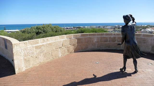 "The Waiting Women" schaut genau dorthin, wo 450 km weiter draußen vor Shark Bay das Wrack der Syndey liegt.