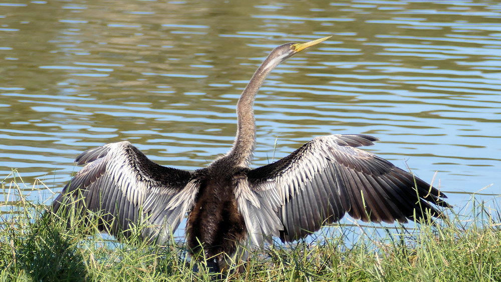 wie diesem Australischen Schlangenhalsvogel. Schlangenhalsvögel sind Verwandte der Kormorane.