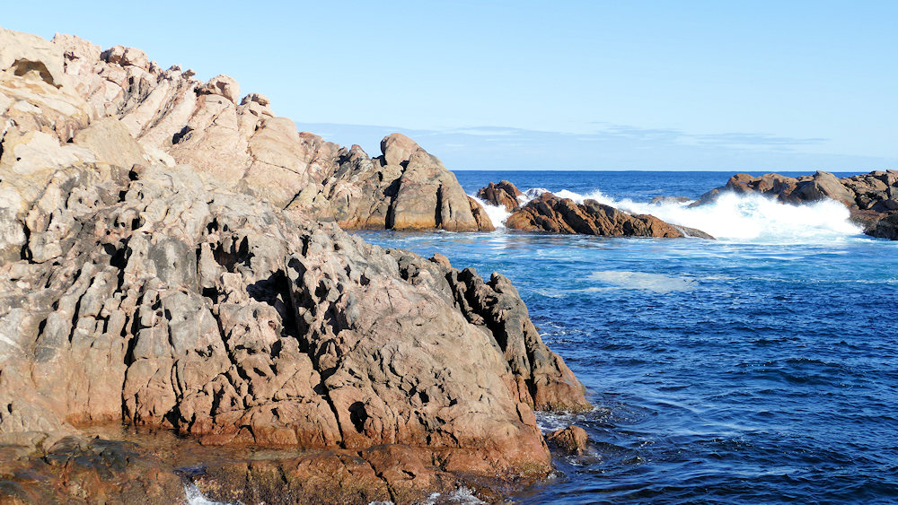 Die Brandung drückt immer wieder kräftig Wassermassen in den "Kanal", die dann wieder zurückfließen.
