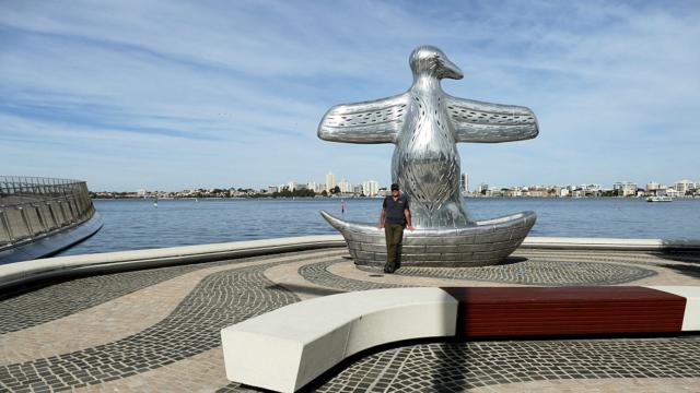 First Contact Sculpture (von einem Aborigine-Künstler gestaltet, symbolisiert sie die Ankuft der ersten Europäer).
