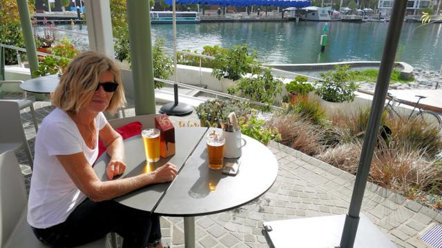 Nach soviel herumlaufen die verdienete Pause im Biergarten am Elizabeth Quai.