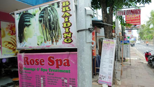Auf der Straße, Pratama Road, ein Geschäft, Restaurant oder Reiseveranstalter nach dem anderen.